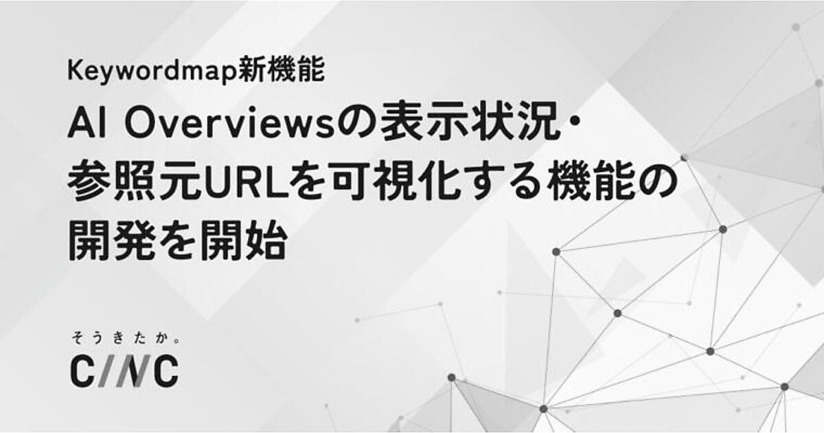 マーケティングソリューション事業のCINC(シンク)は、「Google検索」で検索クエリにAIが回答を自動生成して検索結果の上部に表示する「AI Overviews」に関する表示状況や参照元URLを可視化する機能を開発し、CINCのWebマーケティング調査・分析ツール「Keywordmap(キーワードマップ)」で7月中に提供すると6月27日に発表した。生成AI時代の検索環境の変化や、自然検索でのクリック率(CTR)低下に対応する。