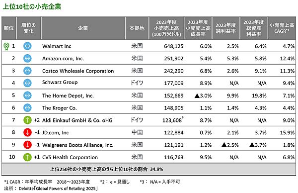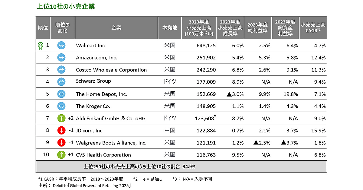 デロイト トーマツ グループは、グローバル調査「Global Powers of Retailing」の最新版を日本語に翻訳したレポート「世界の小売業ランキング2025」を発表した。本調査は、今年で27回目を迎える。