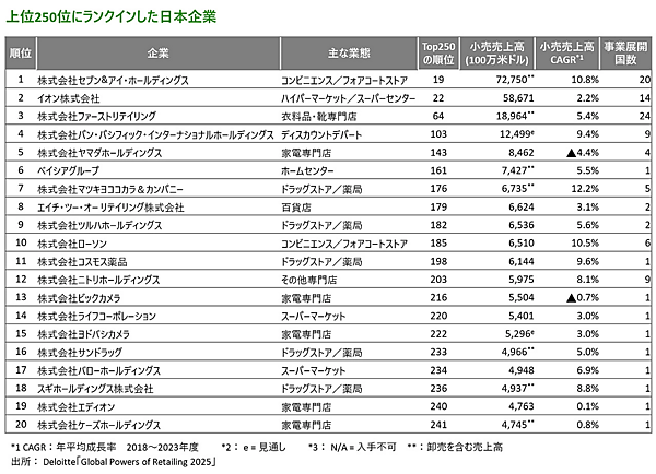 世界の小売ランキング、日本からは20社がトップ250入り