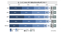 年代別で見ると、20代~60代でこの順は変わらないが、唯一10代では「ファミリーマート」が僅差でトップになっている。「セブン-イレブン」は10代を除くすべての年代で1位だが、年代が上がるほど割合が高くなる傾向がみられた。また男女別では女性のほうがやや多いとのこと。