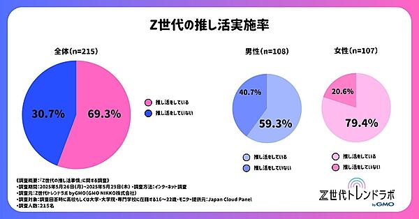 GMO NIKKOが運営する「Z世代トレンドラボ byGMO」は、高校生~大学生・大学院生・専門学生215人を対象に、「Z世代の推し活事情に関する調査」を実施した。