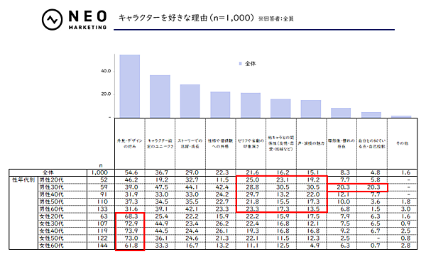 ネオマーケティングは「キャラクターに関する調査」の調査結果を発表した。有名キャラクターが好きな全国の男女1,000名を対象に、インターネットリサーチを実施している。