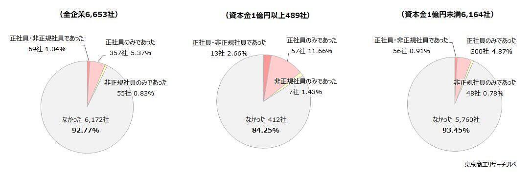 東京商工リサーチは、「退職代行」に関する調査結果を発表した。企業を対象にインターネットによるアンケートを行い、6,653社が回答している。