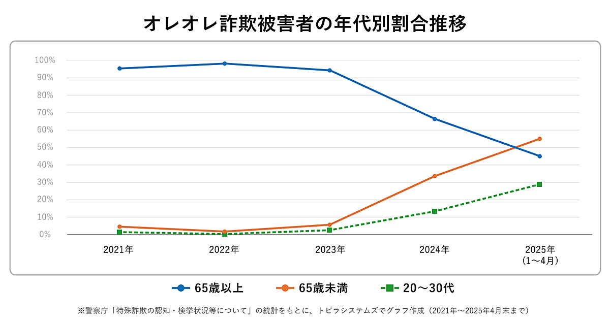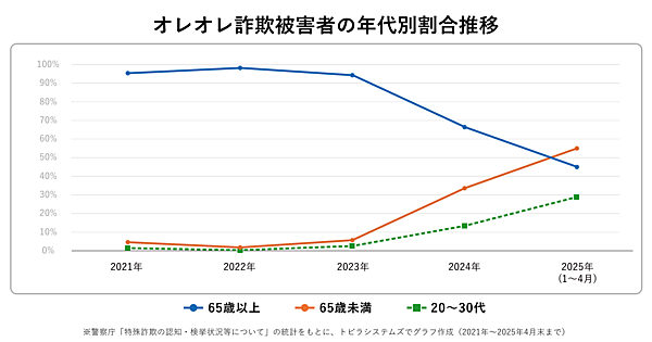 さらに「オレオレ詐欺」に関する分析によると、警察官などをかたり捜査名目で現金をだまし取る詐欺が急増しており、若年層の被害も増加しているという。これについて、トビラシステムズは若年層が狙われやすい3つの特徴として、以下をあげている。
