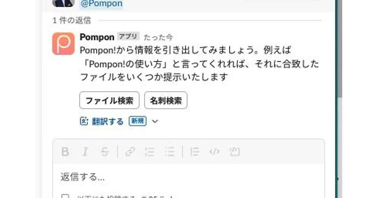 AI(人工知能)ソリューション事業のリバネスナレッジは、生成AIを活用した同社の知識探索プラットフォーム「Pompon!(ポンポン)」で、CRM(顧客関係管理)ソフト「Salesforce」との連携機能の提供を正式に始めた、と7月9日発表した。ビジネス用チャットツール「Slack」上で名刺の画像を送信すると、名刺情報がSalesforceに自動で登録されるようになる。