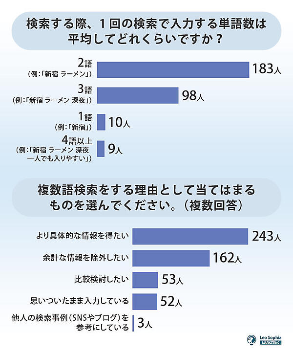LeoSophiaは、「検索行動」に関する調査結果を発表した。全国の10代~50代の男女300人が回答している。