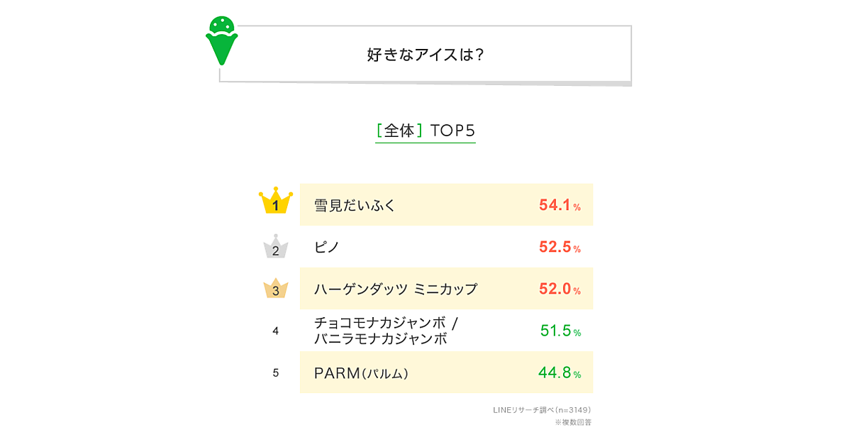LINEヤフーは、全国の15歳~69歳の男女を対象に、好きなアイスに関する調査を実施した。
