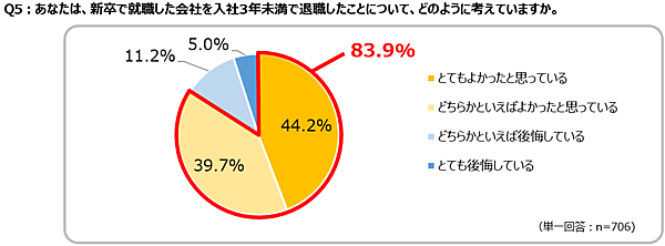 早期離職に後悔はない? 8割以上が「辞めてよかった」と回答