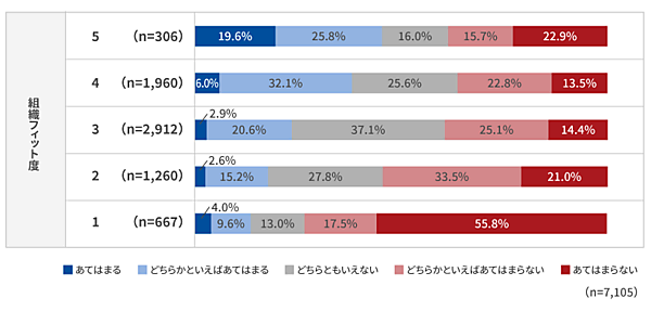 あらためて全体に対し「組織風土との相性(組織フィット)」を見るために、「組織フィット度」の算出を行った。
