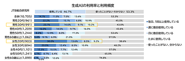 生成AIの利用率トップは「女性20代」日常的な雑談も?