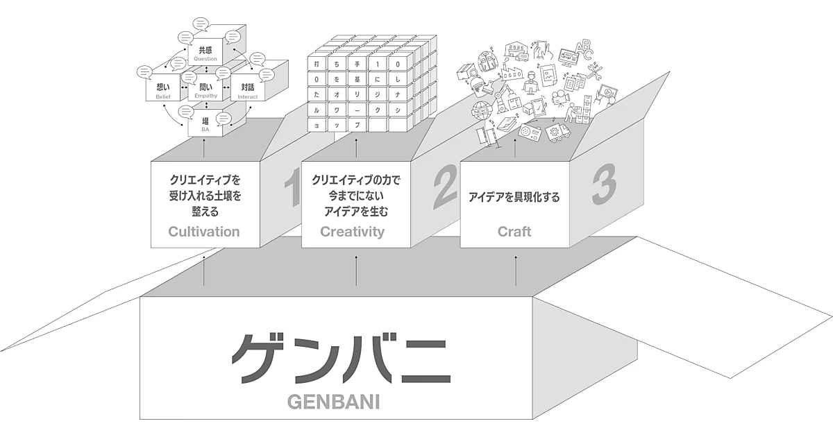 サービスは「Cultivation」「Creativity」「Craft」の3要素で構成。「業務マニュアルを自分ごと化して覚えやすく」「従業員の個性を可視化」「職場空間にデザインを取り入れて創造性や愛着を高める」――などを目指す。Cultivationは対話型ワークショップで根底にある価値観を洗い出し、硬直化した認識を解く。Creativityは製造業の現場では異色のクリエイターがアイデア発想の幅を広げ、熱量高く実行できる打ち手を共に立案する。
