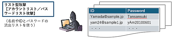 流出した名簿やIDとパスワードのリストを入力して試す「リスト型攻撃」。