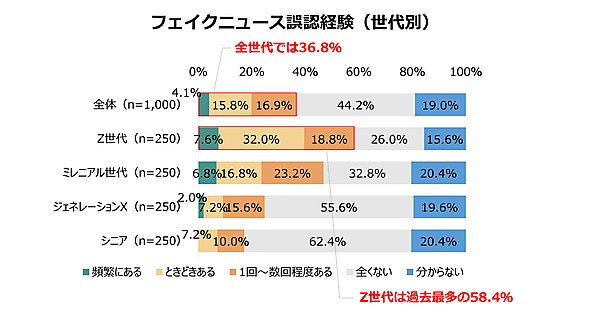 フェイクニュース被害は増加傾向。Z世代でも半数超え