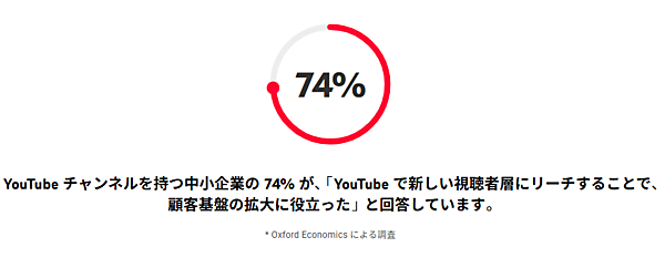 YouTubeは、日本におけるビジネス成長を幅広く後押ししている。チャンネルを運営している中小企業の74%が、「YouTubeで新しい視聴者層にリーチすることで、顧客基盤の拡大に役立った」と回答した。