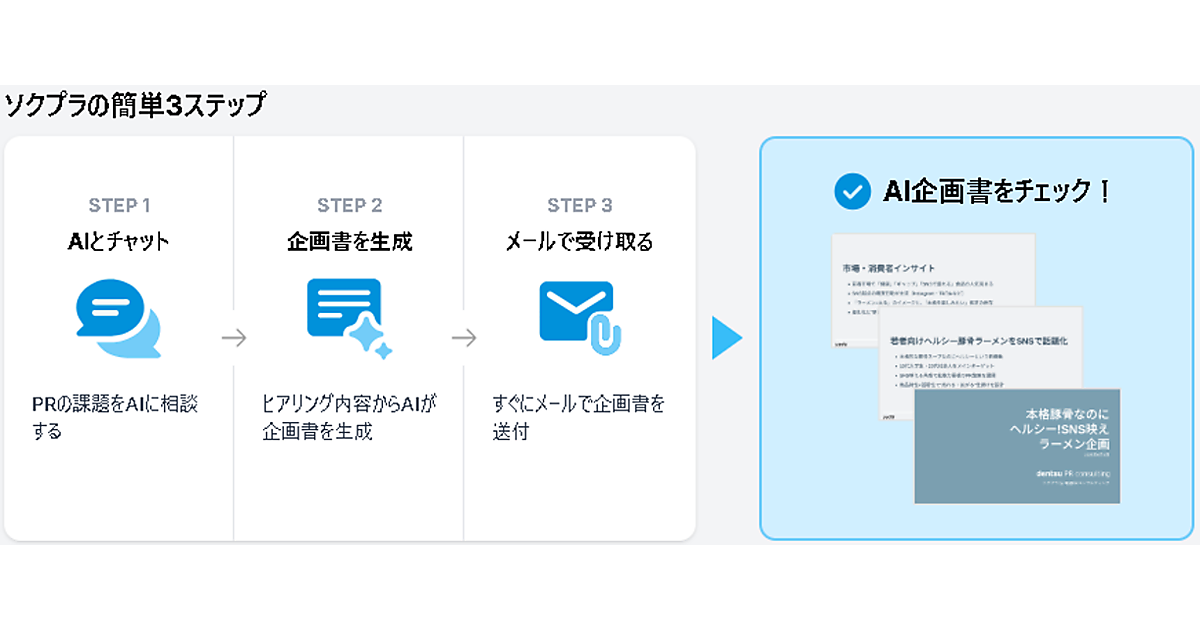 電通PRコンサルティング、無料のAI企画書ツール「ソクプラ」を提供開始。PRの企画書を2分で自動生成