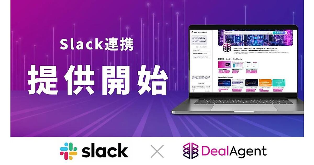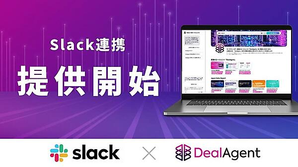 クラウドアプリ開発・営業コンサルティングのマツリカは、提供するマーケティングAI(人工知能)エージェント「DealAgent(ディールエージェント)」とビジネスチャットツール「Slack」との機能連携を始めたと9月16日に発表した。MA(マーケティング自動化)やCMS(コンテンツ管理システム)等の従来ツールではフォーム送信時にとどまっていた顧客情報の取得が、Slackを通じてリアルタイムで多角的に把握できるようになる。