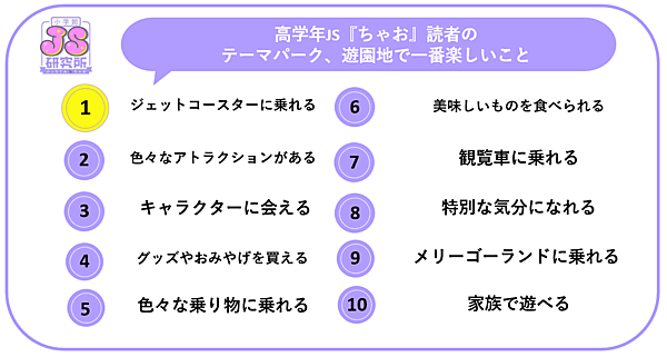 小学館のJS研究所は、女子小学生(JS)の「行きたいテーマパーク」「好きなキャラクター」に関する調査を実施した。少女まんが誌『ちゃお』のはがきアンケ-トにて、2025年9月号では1000人・6月号では500人の読者が回答している。