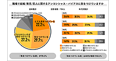 まず「人脈を広げることにリスクを感じるか」と聞くと、「とても感じる」11.9%、「感じる」14.2%、「どちらかといえば感じる」25.6%で、計51.7%が感じる派となり感じない派とほぼ半々にわかれた。年代別の感じる派では、20代60.3%、30代51.1%、40代40.5%、50代40.0%と、若い人ほど警戒心が強い。