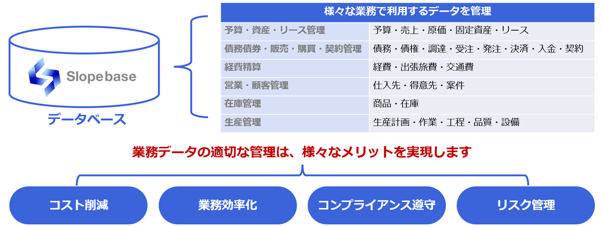 支出管理は一般的に、企業で発生する経費や支払いを把握して管理し、無駄なコストを削減する取り組みを指すが、Slopebaseはこれだけでなく社内のデータや業務フローをクラウド上で統合・可視化することでリアルタイムな業務連携と意思決定を可能にする。誰が・どこで・なぜ会社のおカネを使っているか、の視点で関連業務全体を最適化して業務改革につなげる。