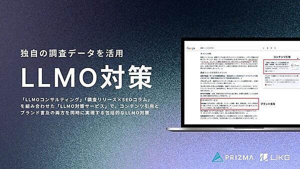調査リリース×SEOコラムは、プレスリリースにアンケート調査を組み合わせた調査リリースの活用▽SEOとCV(コンバージョン)=最終成果=最適化を施した記事制作での上位表示▽独自データを盛り込んだ記事でのAI引用率向上--。LLMO対策サービスはPRIZMAと、デジタルマーケティング事業のLiKG(リク)が連携し、両社の強みを生かして実施する。