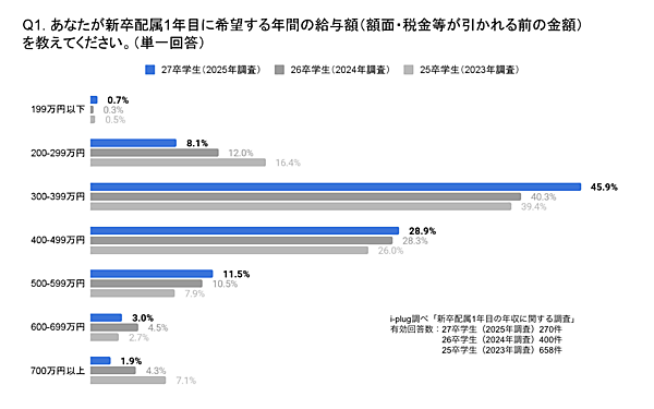新卒の希望年収は「300~399万円」、500万円以上を望む声も