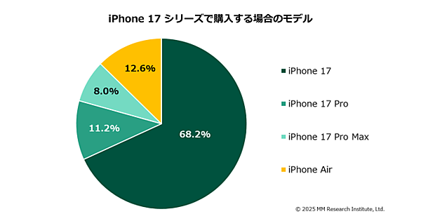 MM総研は、「iPhone 17シリーズ/iPhone Airの購入意向」に関する調査結果を発表した。iPhoneを利用中の15~69歳の男女1,583人が回答している。
