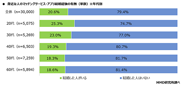 20代の4人に1人が「知人がマッチングアプリで結婚」