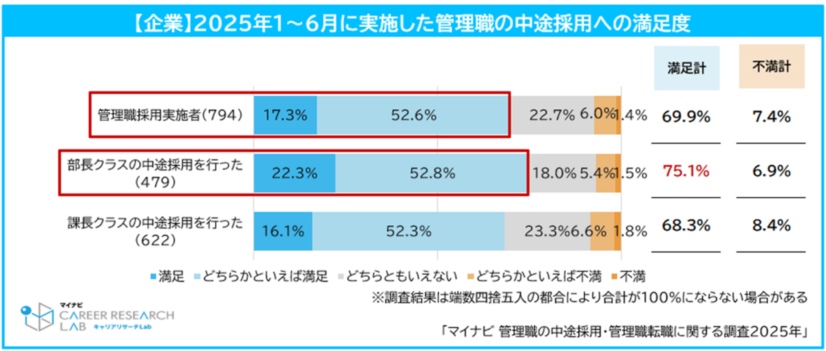 管理職の中途採用、「即戦力」「求める以上の人材が入社」で満足