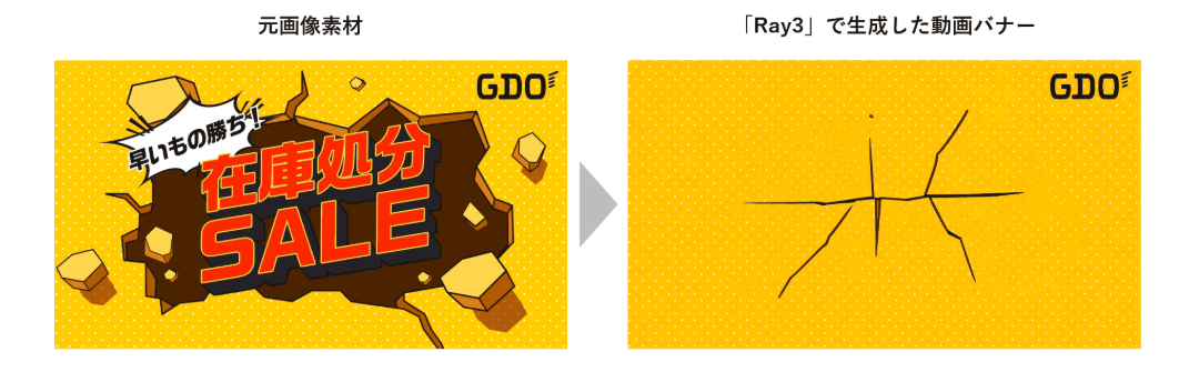 電通デジタルが、ゴルフ関連事業のゴルフダイジェスト・オンラインと設立した生成AI研究組織「GDO AI-Lab」が活動の一環でRay3を活用。アプリダウンロード促進の広告バナー素材から動画バナーを一括生成して広告配信したところ、インプレッション数が2500%、インストール数が8倍に増え、大きな成果を挙げた。バナー制作時間はRay3で約1時間になり、効率化した。