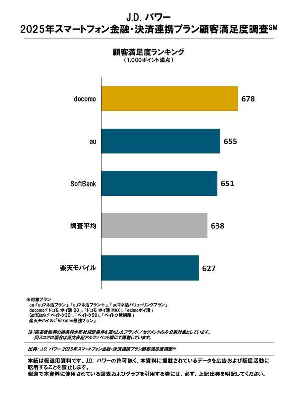 J.D.パワージャパンは、「携帯電話サービス各社のポイ活系料金プランの顧客満足度」に関する調査結果を発表した。金融・決済連携タイプのスマートフォン料金プランを契約している1,945人が回答している。