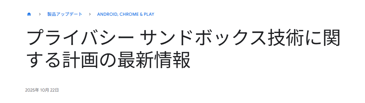 プライバシーサンドボックスは、プライバシー問題が指摘されるサードパーティCookie(クッキー)を置き換えるための構想で、2019年8月に発表した。プライバシーを保護しながら適した広告を表示する取り組みとして推進。サードパーティCookieを段階的に廃止する計画だったが、Googleは今年4月に維持することを決めた。