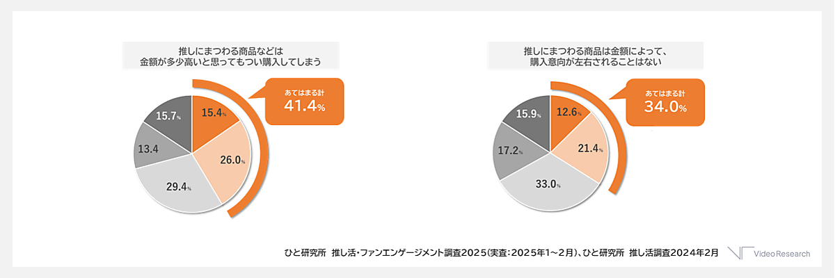 また、「推しにまつわる商品は金額が多少高いと思ってもつい購入してしまう」については、41.4%の人が「あてはまる」と回答。推しが関与することで、価格のハードルを超えて購入に踏み切る層が一定数いることがわかった。