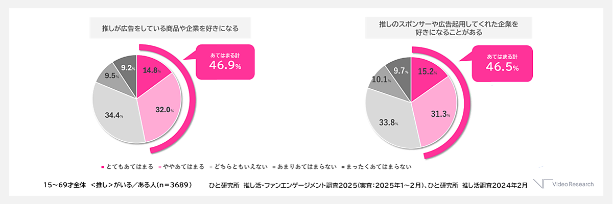 ビデオリサーチのシンクタンク「ひと研究所」は、「推し活・ファンエンゲージメント調査2025」を実施した。15~69歳の男女13,786名が回答している。なお、同社では、「推し」を“好き・お気に入りの人物やモノ”とし、それを応援する行動を“推し活”と定義している。