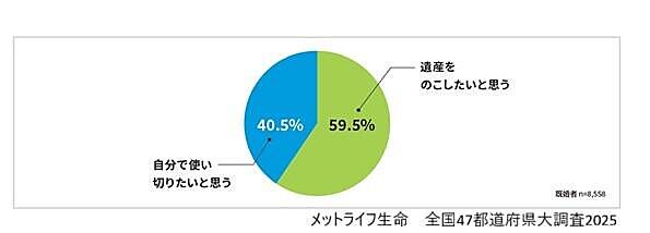 主要な項目ごとに見ると、まず資産形成の最終段階とも言える「相続」について、「遺産を残したい」と考える人は59.5%に上る一方で、「必要だと思うが、まだ話をしていない」49.7%、「必要ではないと思うし、まだ話をしていない」15.3%、「相続する家族はいない」19.3%と、総計84.3%が家族と話し合っていない/話し合えない状況だった。
