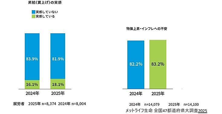 メットライフ生命は、「全国47都道府県大調査2025~社会情勢の変化と将来への備え~」の結果を発表した。全国47都道府県に在住(調査実査時点)の20代~70代の男女14,100人が回答している。2018年から行っており今回で8回目。