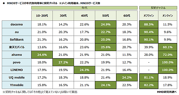 MNO(Mobile Network Operator)とは自社回線網をもつ移動体通信事業者を指す。利用者2700人の内訳は、docomo(n=300)、au(n=300)、SoftBank(n=300)、楽天モバイル(n=300)、ahamo(n=300)、povo(n=300)、LINEMO(n=300)、UQ mobile(n=300)、Y!mobile(n=300)。