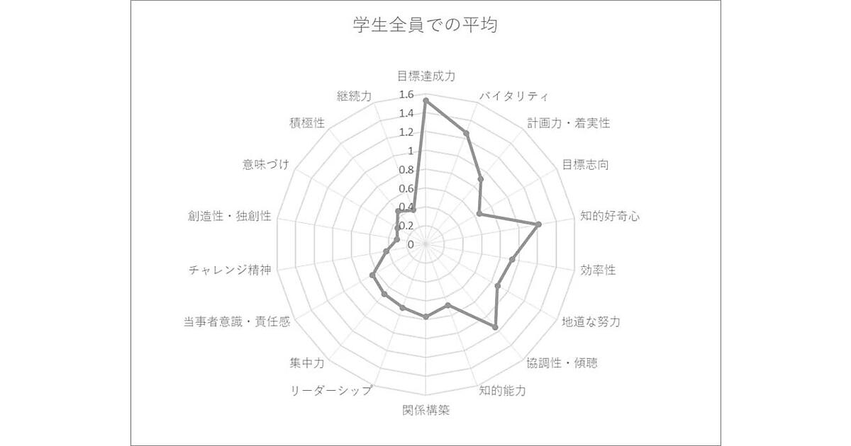 さらに業界別で見ると、メーカー(素材・化学)では「地道な努力」が平均より高く、商社では「協調性・傾聴」が平均より高く、流通・小売では「知的好奇心」「チャレンジ精神」「協調性」「リーダーシップ」が高い一方で、「集中力」は平均よりもやや低めといった差異が見られた。