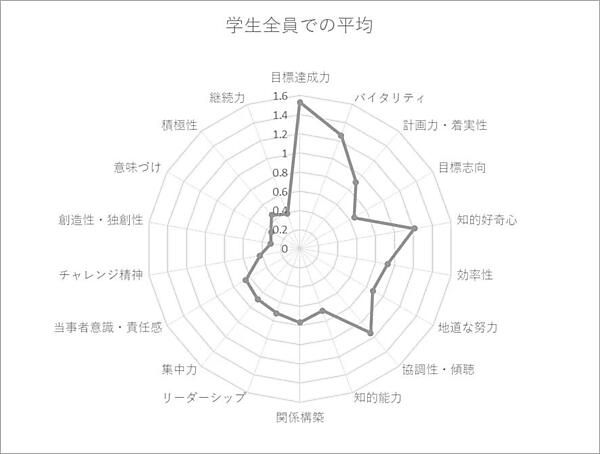 まず主要な18種の学ポタについて「自身のレベル」を聞くと、「目標達成力(日常的にやるべきことをこなす)」「バイタリティ(忙しくても前向きに動ける力)」「知的好奇心(疑問に対する積極的な姿勢)」「協調性・傾聴(人といっしょに進める力)」の4つが特に高かった。