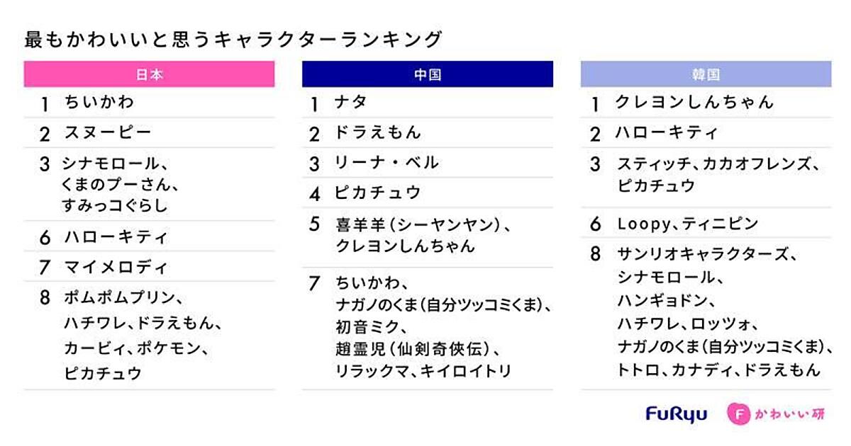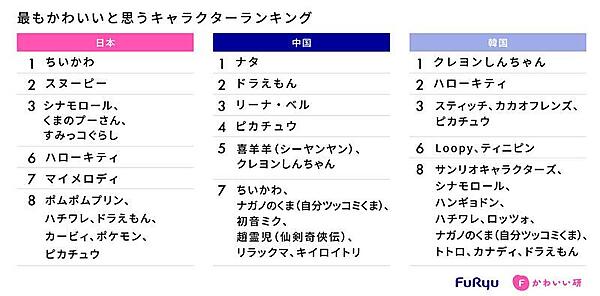 そして「“かわいい”と思うキャラクター」を聞くと、自国・他国のキャラクターが混在。また、日本・韓国ではサンリオキャラクターが上位にランクインした。