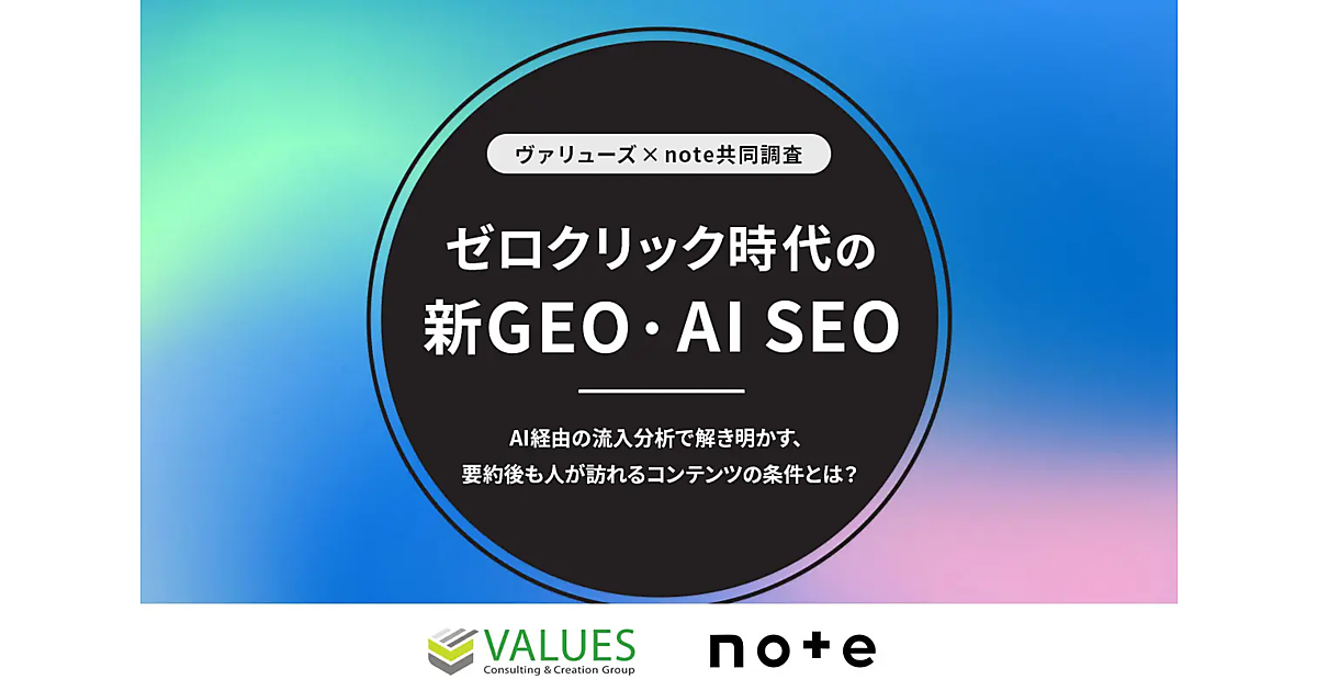 ヴァリューズが蓄積する国内最大級のWeb行動ログデータと、noteのプラットフォーム内のデータ分析を組み合わせ、「AIに引用され、さらにユーザーが実際に訪問する」コンテンツの傾向と、そうしたコンテンツが集まる場の構造を明らかにしている。AI検索時代に事業会社やブランドはどのように対応すべきかの道筋を示す調査結果となっている。