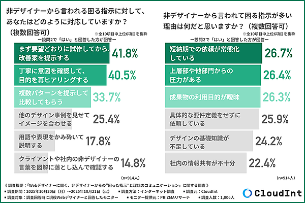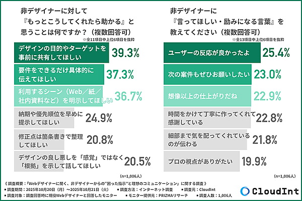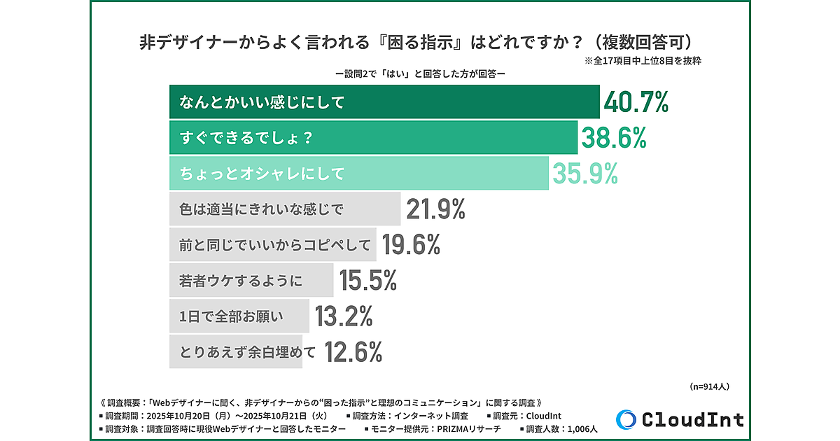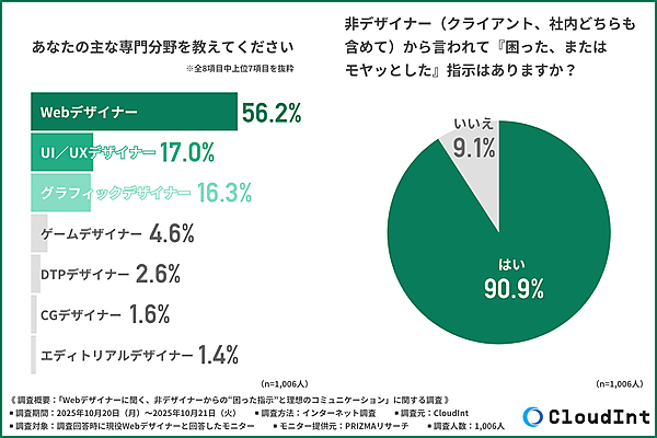 CloudIntは、「Webデザイナーに聞く、非デザイナーからの“困った指示”と理想のコミュニケーション」に関する調査を実施した。現役Webデザイナー1,006人が回答している。