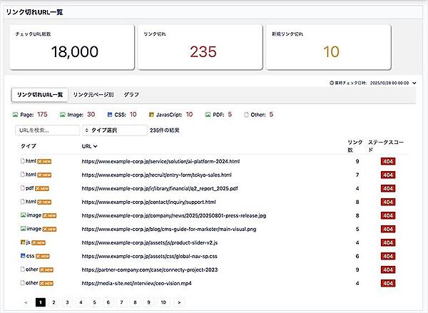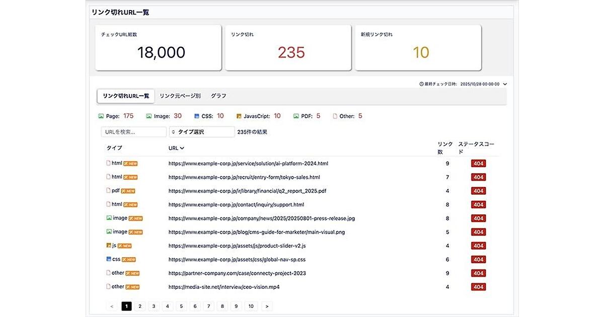 リンクチェック機能は、サイトのリンク切れ(404エラー)を自動検知して通知する。一次の外部リンクも対象になり、外部環境の変化に対応できる。ドラッグ&ドロップでの複製機能は、ファイルツリー上でのフォルダ・ファイル移動に追加した。ガバナンス強化に関してはチーム・ワークフロー設定のCSV管理を加え、チーム情報や複数のワークフロー設定の一括管理・更新を可能にした。