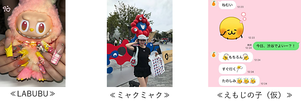 キャラクター部門の1位は長い耳とギザギザの歯を持つモンスター「LABUBU」。2位は大阪・関西万博の公式キャラクター「ミャクミャク」、3位は2024年11月にLINEのデフォルト絵文字に追加されたキャラクター「えもじの子(仮)」だった。