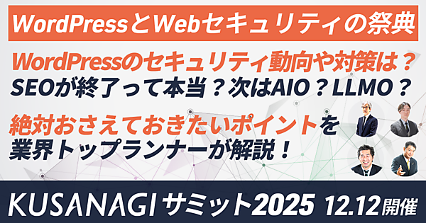 WordPressとWebセキュリティの祭典「KUSANAGIサミット2025」12/12(金) オンライン開催