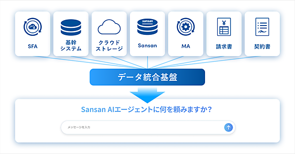 働き方に関するAX=AI(人工知能)技術による変革=サービス事業のSansanは、企業が保有するビジネスデータをAIで利用するソリューション「Sansan AIエージェント」と、各生成AIツールと同社のビジネスデータベース「Sansan」を接続する仕組み「Sansan MCPサーバー」の提供を始める、と11月21日発表した。企業は自社のビジネスデータが生成AIを通して柔軟に活用できるようになる。
