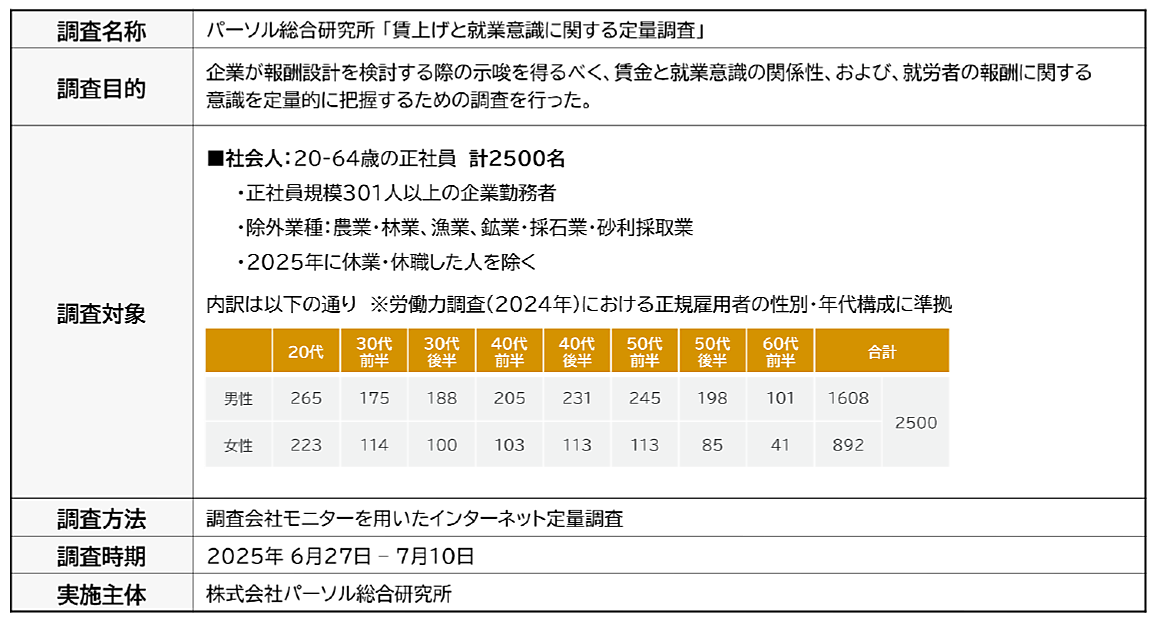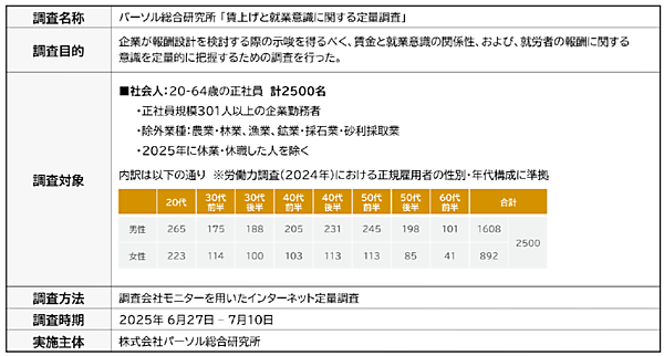 パーソル総合研究所は、「賃上げと就業意識」に関する調査結果を発表した。20歳~64歳の正社員2500人が回答している。