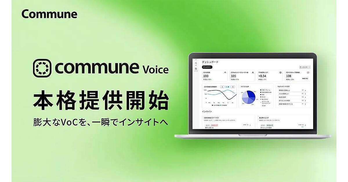 企業コミュニティ支援のコミューンは、生成AIで顧客の声(Voice of Customer:VoC)や従業員の声(Voice of Employee:VoE)を分析するサービス「Commune Voice」の本格提供を始めたと12月9日に発表した。コミュニティやSNSに寄せられた膨大な顧客の声や従業員の声を分析するサービスで、時間やコストを大幅に削減しながら顧客インサイトを効率的に抽出して、商品開発や解約率の改善などマーケティング活動に活用できる。