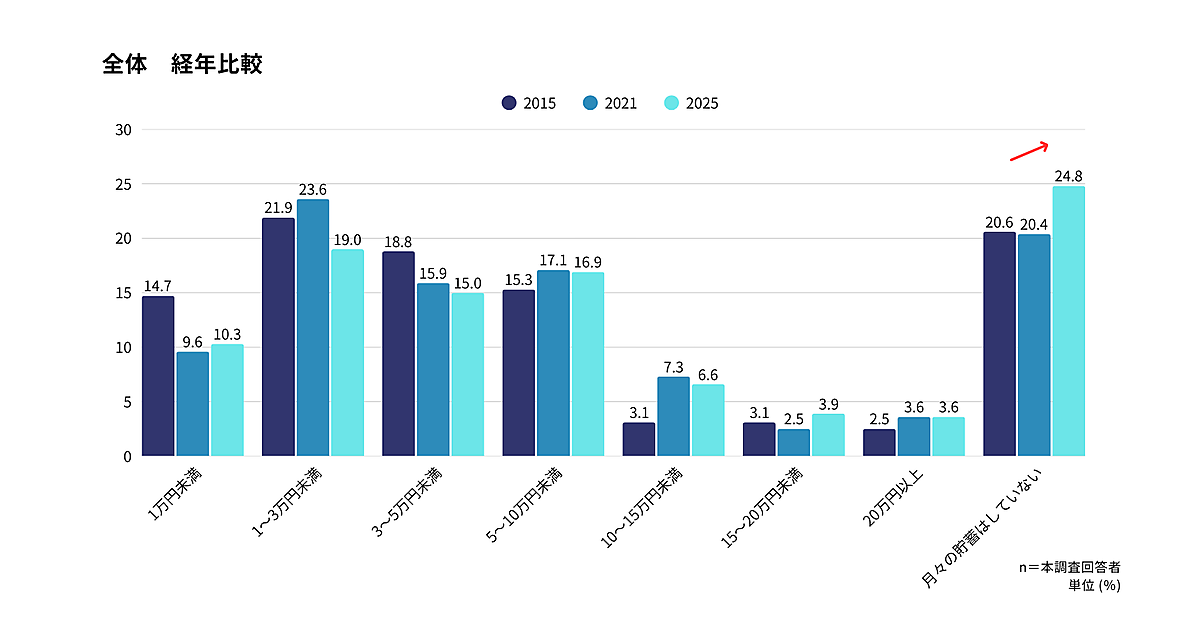 「毎月の貯金はしていない」が24.8%で過去最多