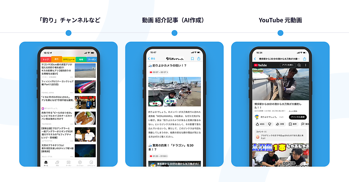 コンテンツはSmartNewsのトップ画面や関連チャンネルからアクセスできる導線を整える。まず「釣りよかでしょう。」や「UUUM GOLF-ウーム ゴルフ-」など趣味領域の動画からAIによる記事化を順次開始する。内容が一目でわかる記事として届けることで、これまで触れる機会のなかった動画に自然に出会える。先行テストでは動画紹介記事がチャンネル内の他の記事と同等以上の閲読を獲得し、記事から元動画の視聴へ進む動きも確認した。