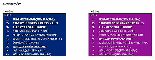 - 【調査方法】同社主催の合同説明会、または弊社会員へのWebアンケートにより回収。キャリアゴール9個のなかから重要視している特徴を学生が上限3つを選択。投票数が多いものをランキング化